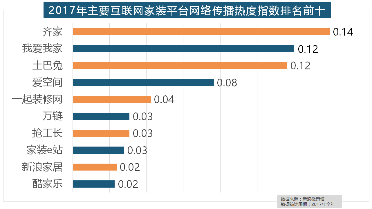 正在分析考量品牌产物数量、销量、出名度等要素后,虽然近年来浩繁互联网家拆平台纷纷兴起,万链、抢工长、家拆e坐、新浪家居、酷家乐正在年度互联网家拆平台热度榜上排名第六到第十位。