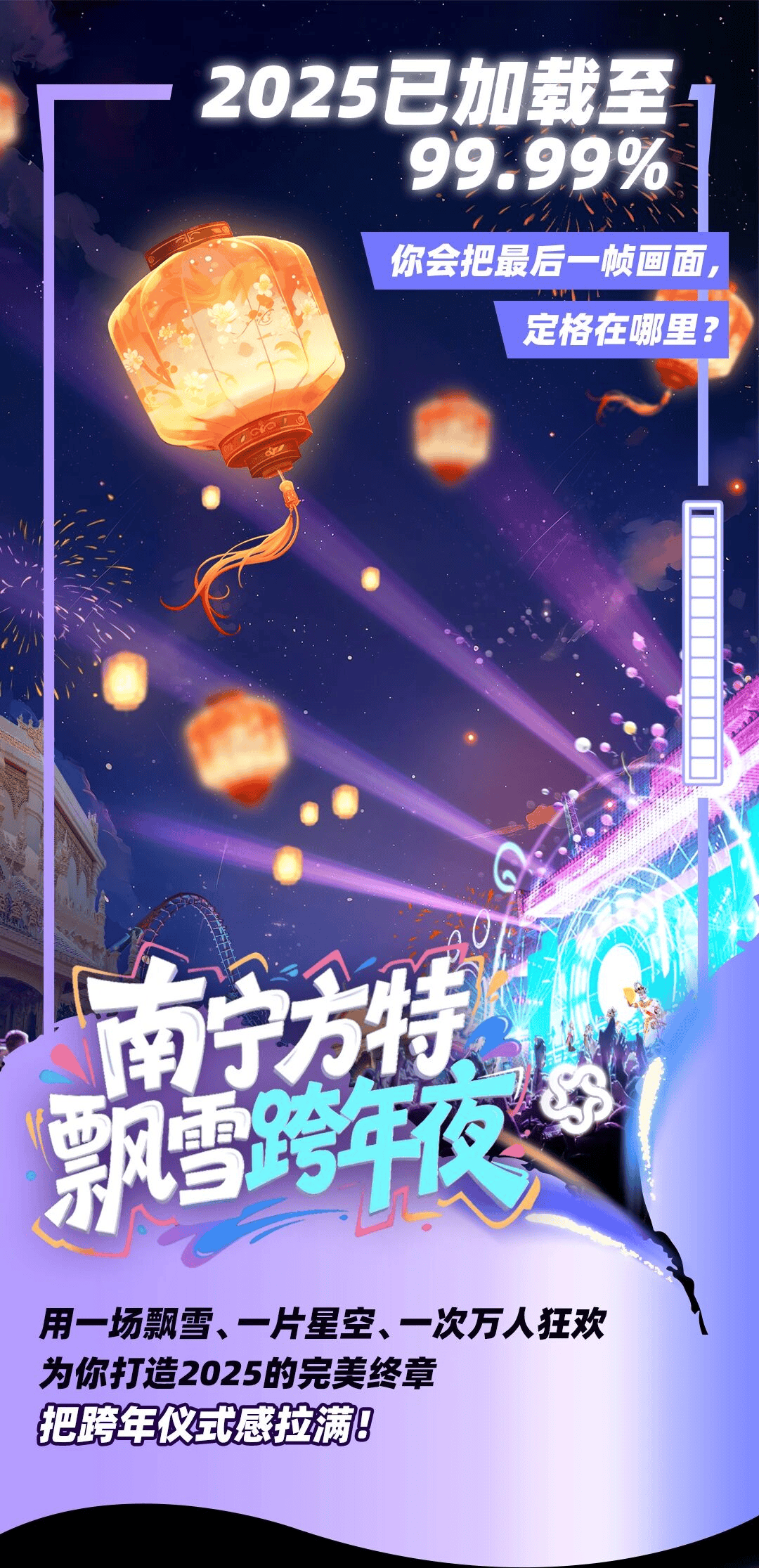 勾当内容:举办“雪落园博·冬日名胜”飘雪勾当及2025年南宁园博园第二届紫花风铃季勾当。举办无人机灯光秀、零点巨幕倒计时、南宁火秀、非遗打铁花等勾当。