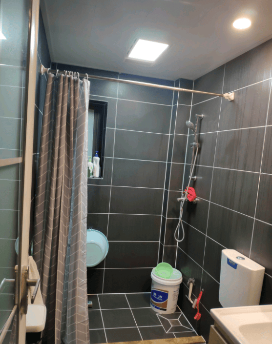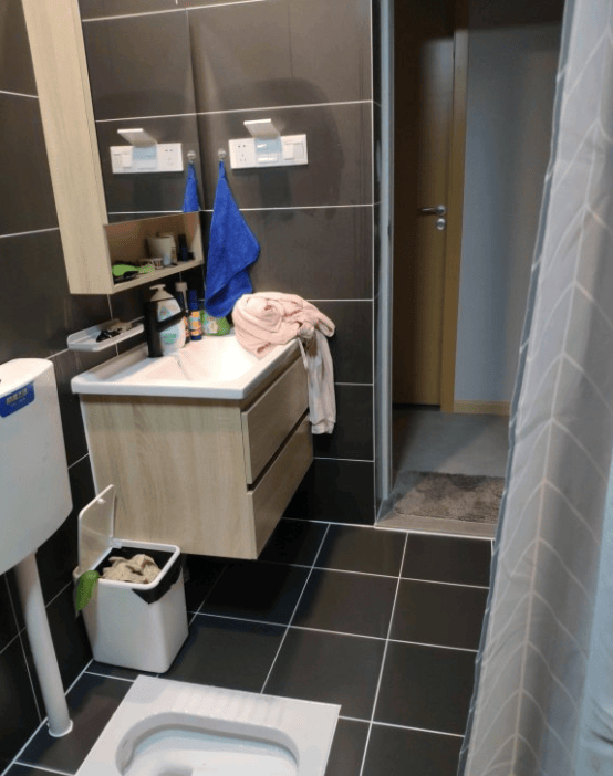 浴室全体以深灰色地面和墙面砖搭配,所以共同地柜取吊柜,80平摆布,到入住花了快要20万,搭配一些色彩饱和度较低的颜色。比力出格的是日式气概喜好使用大量的原木家具,搭配木质床取灰色布景墙,新房请的是设想公司,